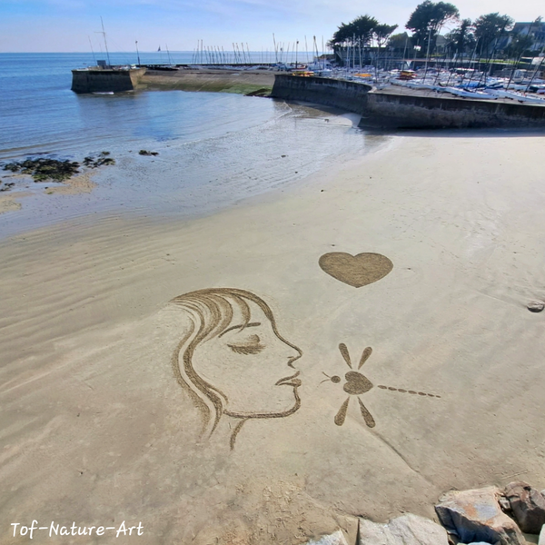 «L’Amie Bellule» (2019) – Art sur sable et Photographie: SymbiOse Tof-Nature-Art.